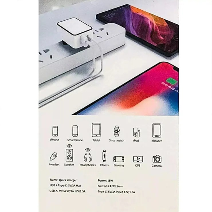 With its lightweight, compact design, this 18W charger is ideal for on-the-go use. It easily fits into your bag or pocket, making it a convenient accessory for travel, commuting, or everyday use at home or the office.