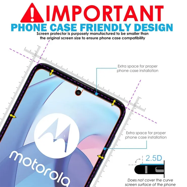 Installation is quick and stress-free. With a precise cut tailored to the Motorola Moto E22i, each protector fits edge-to-edge for comprehensive coverage while remaining case-friendly. The included application kit helps you achieve a bubble-free finish on the first try. Strong adhesive backing ensures a secure fit without lifting, peeling, or leaving residue behind.