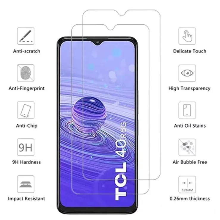 | Compatible Brand | For TCL | Compatible Model | TCL 405 | Type | Screen Protector | Features | Anti-Scratch, Anti-Shatter, Full Coverage, Tempered Glass,Oleophobic Coating, Rounded Edges & Slim Glass, Surface Hardness: 9H, Ultimate Touch Sensitivity, Whole Transparency | Material | Tempered Glass | Screen Size | 6.6" | Color | Ultra Clear | Manufacturer Warranty | 30 Days | Package Include | 2x Screen Protector |