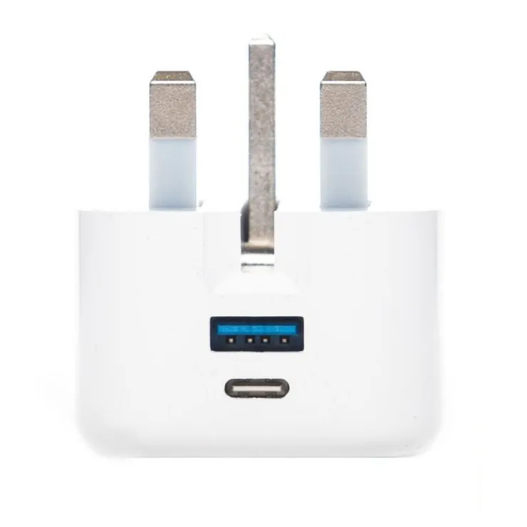 Travel Wall Charger 20W – USB-C to USB-A Foldable UK Plug – White – Fast Charge
