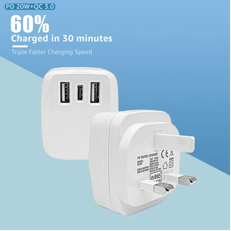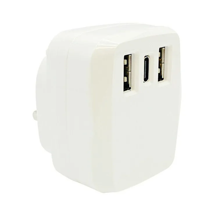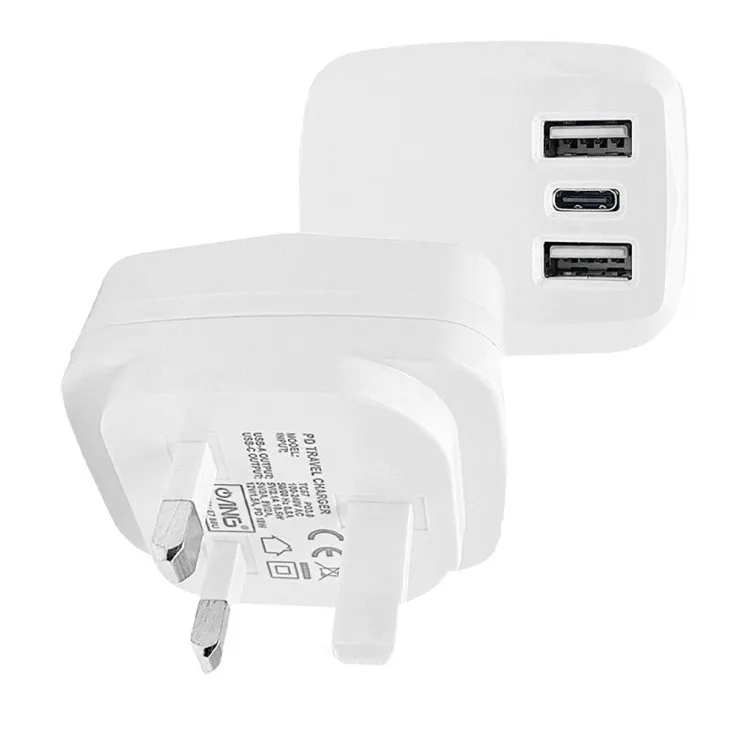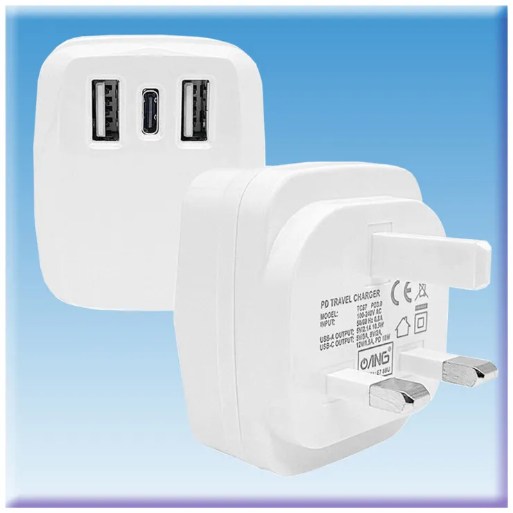 3-Pin Fast Charger Plug – Dual USB + 18W PD Port – 3.1A Wall Adapter – UK Stock