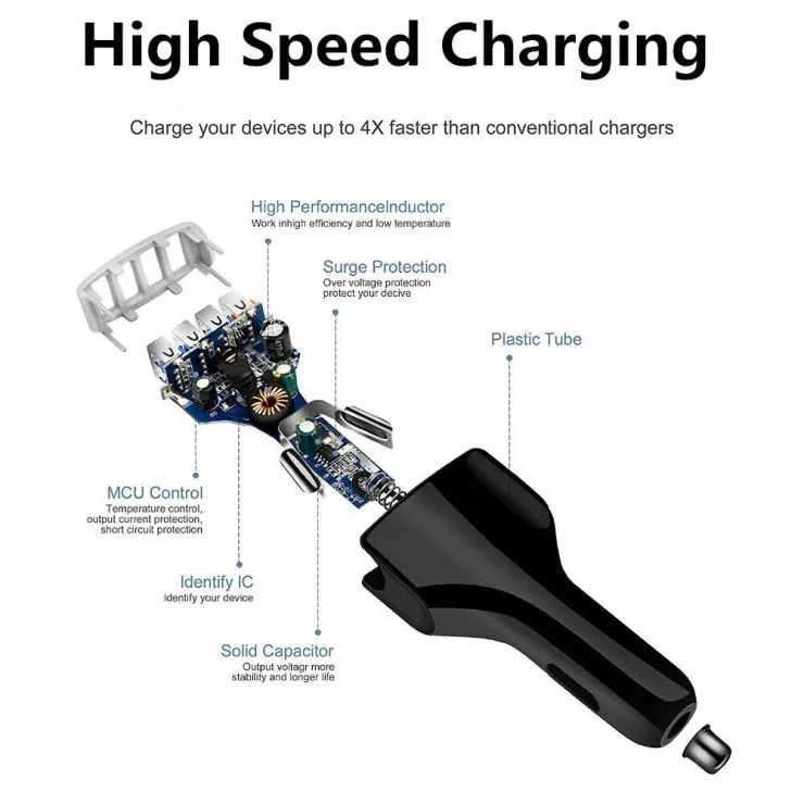 Charge up to four devices simultaneously with the USB Car Fast Charger featuring 4 ports and a total output of 36W. This high-performance charger is designed for families, rideshare drivers, and anyone who depends on multiple gadgets while on the move. Whether you're powering smartphones, tablets, GPS units, or portable accessories, this multi-socket solution ensures that every device stays fully charged throughout the journey.