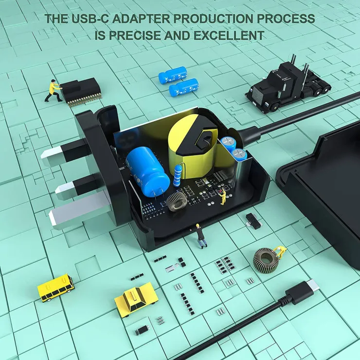 Equipped with 65 watts of power and USB Power Delivery (PD) support, this adapter delivers fast charging without compromising safety. Your devices will charge quickly and efficiently thanks to intelligent voltage regulation and thermal management. Built-in safeguards protect against overcharging, overheating, and short-circuiting, ensuring long-term safety and performance for your valuable electronics.