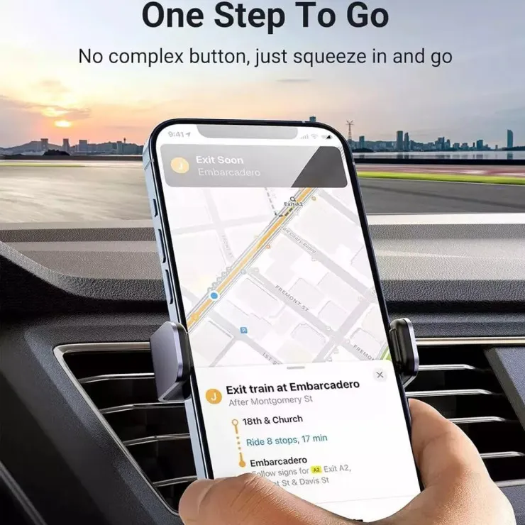 This holder features a smart gravity mechanism that locks your phone in place without the need for clamps, buttons, or adjustment knobs. As soon as your device is placed into the cradle, the weight of the phone naturally activates the arms to close around it, providing a snug and secure hold. When you're ready to remove the phone, simply lift it out. The gravity design ensures one-handed operation, allowing you to keep your focus on the road.
