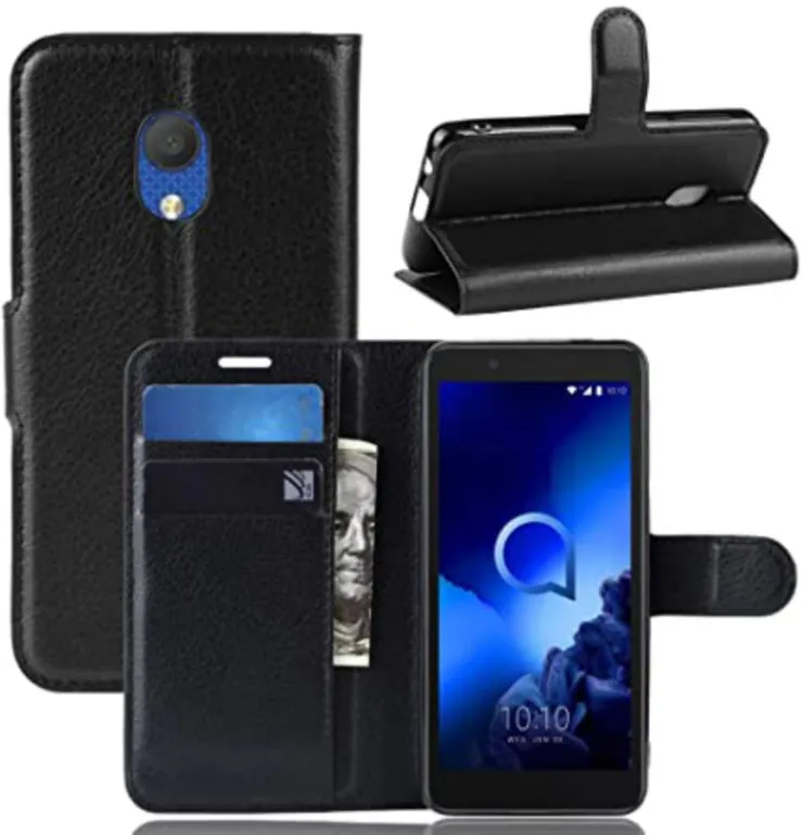 | Compatible Models | Alcatel 1c (2019) | Features | Adjustable Angle, Anti-Fingerprint, Anti-Scratch, Card Pocket, Lightweight, Shockproof. | Dimensions | 136.6 x 65.3 x 10 mm (5.38 x 2.57 x 0.39 in) | Item Weight | 80g | Colors | Black | Package Includes | 1x Leather Case |