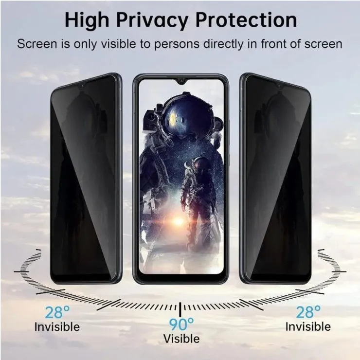 Protect your privacy with this anti-spy privacy glass designed for the Infinix S5 Pro. The built-in privacy filter ensures that your screen is visible only to you, while side-angle views are darkened, making it impossible for anyone around you to peek at your personal information, messages, or browsing activity. Perfect for maintaining privacy while on public transport, in cafes, or in crowded areas.