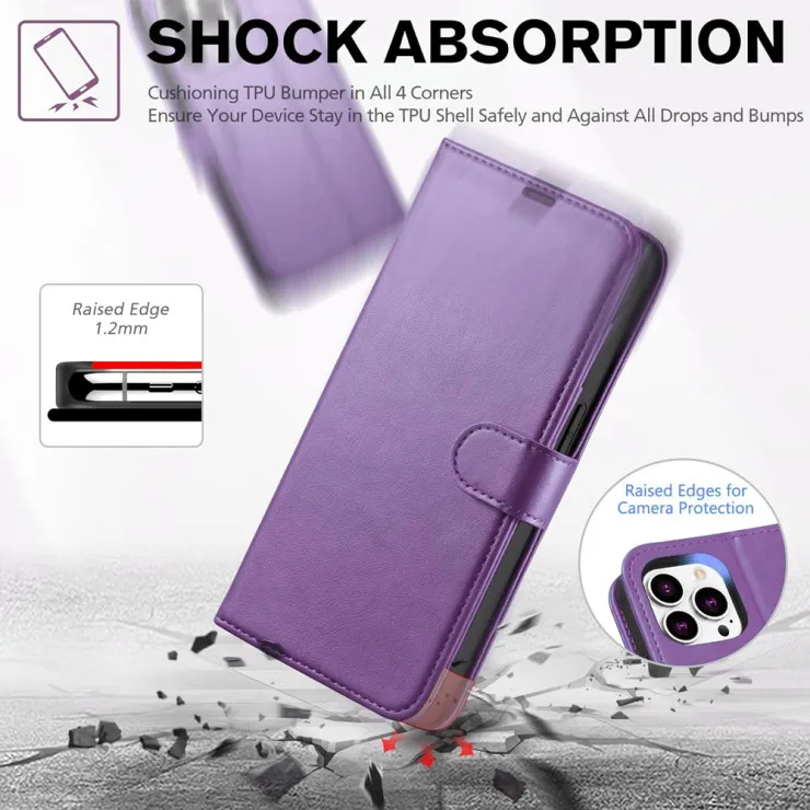 | Compatible Brand | For Apple | Compatible Model | iPhone 13, iPhone 13 Pro, iPhone 13 Pro Max | Type | Leather Wallet Case | Features | Anti-Drop, Kickstand, Magnetic, Flip wallet cover, Card Slot, Screen Protection | Material | Premium Leather | Colours | Black, Blue, Pink, Purple & Rose | Manufacture Warranty | 60 Days | Package Included | 1x iPhone 13 Series Leather Wallet Case |