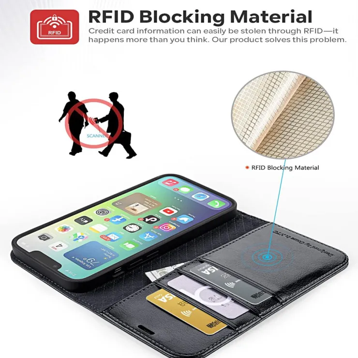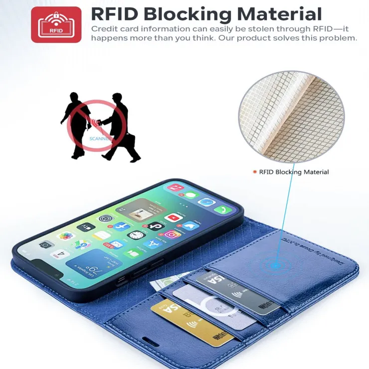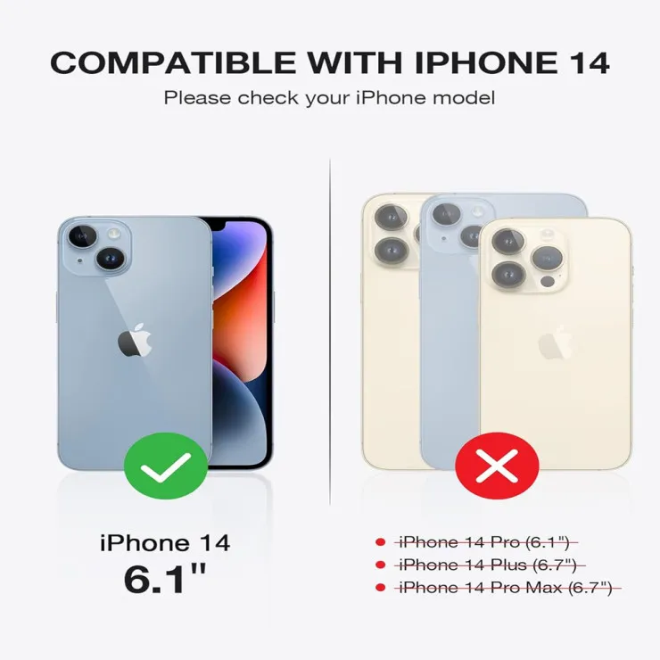 This wallet case offers comprehensive protection against scratches, bumps, and minor drops by securely enclosing your iPhone 14 in a durable frame. Precise cutouts ensure full access to all buttons, ports, cameras, and speakers, so you never have to remove the case to charge, snap photos, or adjust volume.