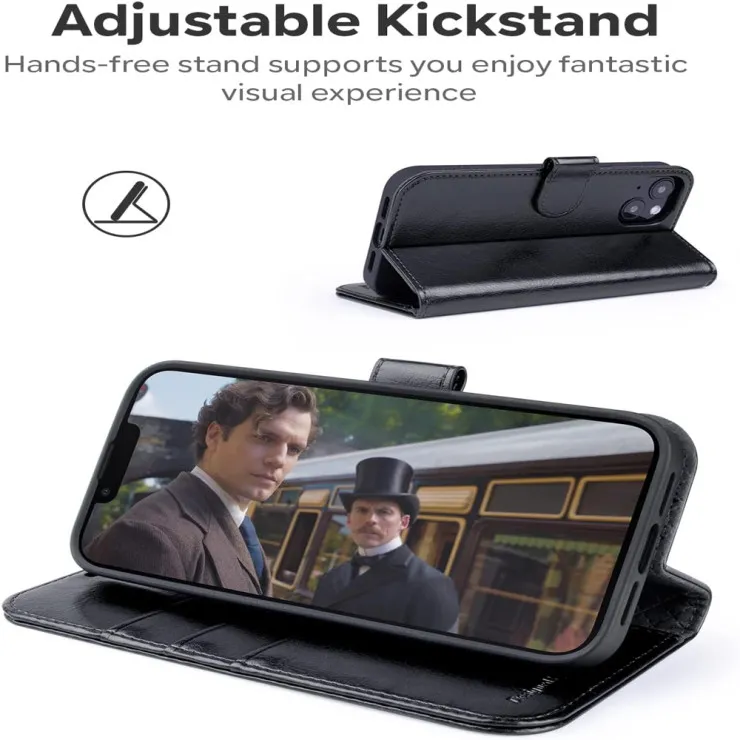 Perfect for users seeking style, convenience, and protection in one accessory, this Apple iPhone 14 Leather Wallet Case with Card Holders and Kickstand is a smart choice to keep your device safe and your essentials organized.