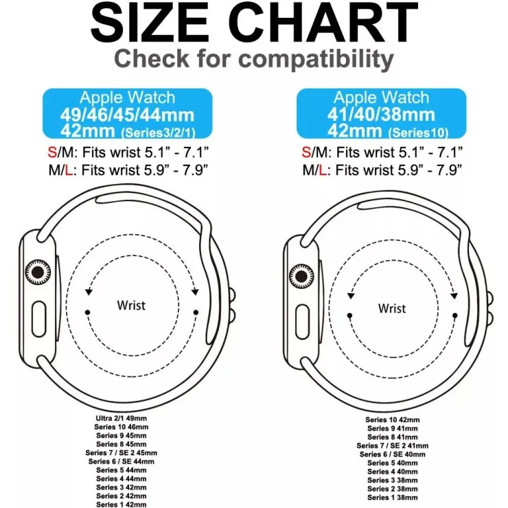 This Silicone Sport Band is thoughtfully engineered to be compatible with a broad range of Apple Watch models, including Series 9, 8, 7, 6, SE, 5, 4, and 3. It supports all standard case sizes — 38mm, 40mm, 42mm, and 44mm — ensuring a perfect, secure fit regardless of which generation you own. Whether you’re upgrading your watch or need a versatile replacement band, this option provides seamless compatibility and easy installation.