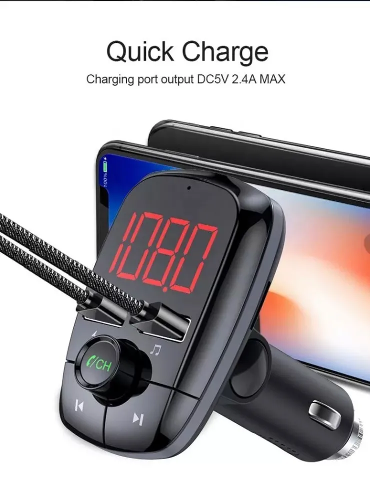 FM Radio Transmitter: Tune in to your preferred FM frequency and broadcast your music directly to your car's radio. No more struggling with tangled cables or relying on outdated AUX connections. This transmitter ensures a seamless listening experience.