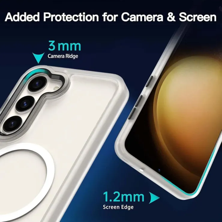 The white Samsung Galaxy S23 Plus MagSafe-compatible case combines sleek aesthetics, multi-layered protection, and wireless charging convenience. It’s a perfect match for anyone who wants to safeguard their device without sacrificing style or functionality.