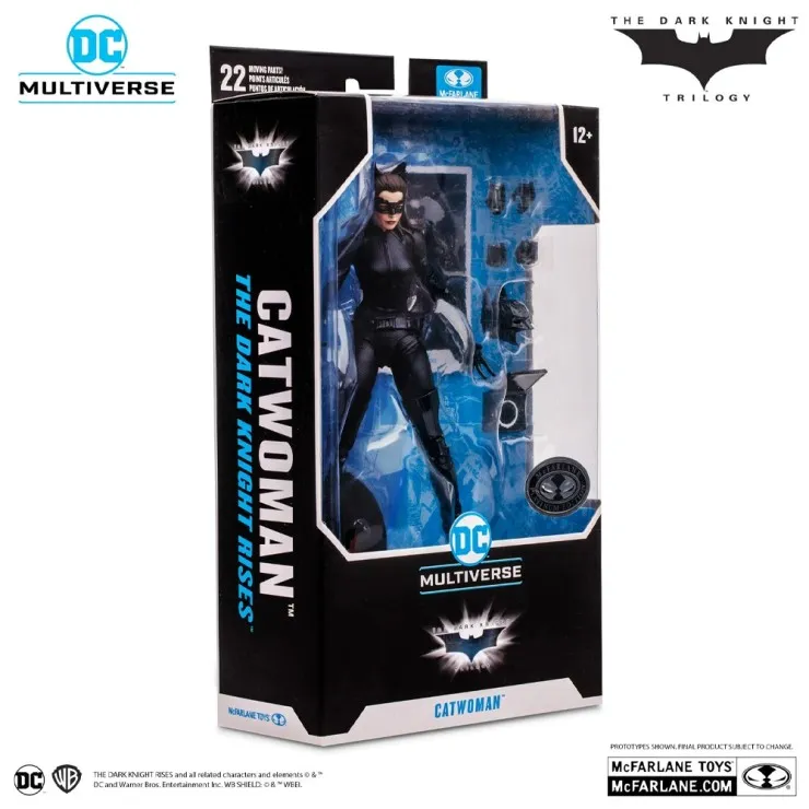 | Brand | McFarlane Toys | Type | Action Figure | Features | Incredibly detailed 7" Catwoman figure with 22-point articulation, 4 extra hands, accessories, display base, and collectible art card. | Material | Plastic | Colour | Black | Product Dimensions | 15 x 7 x 27 cm; 222.26 g | Manufacturer recommended age | 12 years and up | Item model number | 17174 | Package Include | 1X DC Multiverse Catwoman 7" Action Figure |