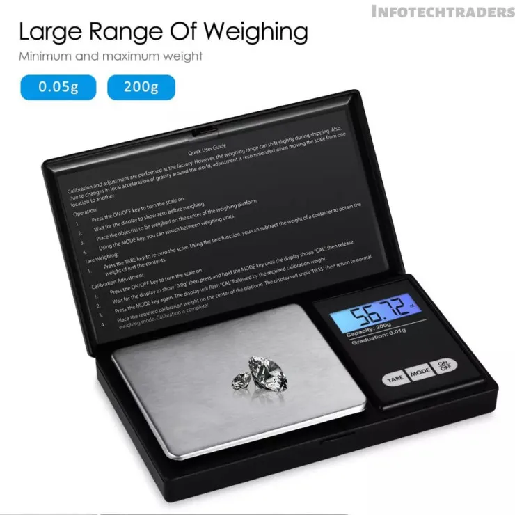 This mini scale is perfect for a wide range of tasks. It’s a trusted tool for jewellers measuring precious metals and stones, hobbyists handling small components, cooks needing accurate spice measurements, or even postal users weighing small parcels. Its versatile performance makes it a must-have accessory for kitchens, workshops, labs, and desktops.