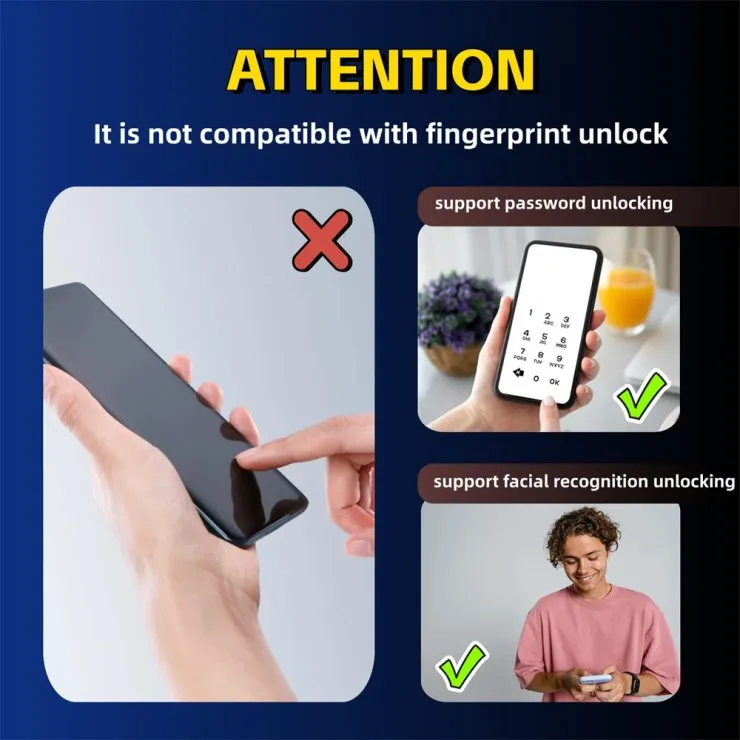 This anti-spy glass delivers a crystal-clear, high-definition viewing experience when viewed straight on, preserving your phone’s stunning display and vibrant colors. Unlike lower-quality filters, there is no rainbowing or blurriness — your apps, videos, and messages stay crisp and easy to read.