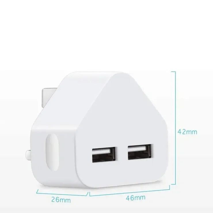 Dual USB Charger 3 Pin Mains 2.1Amp Fast Triangle Wall Plug UK Adapter