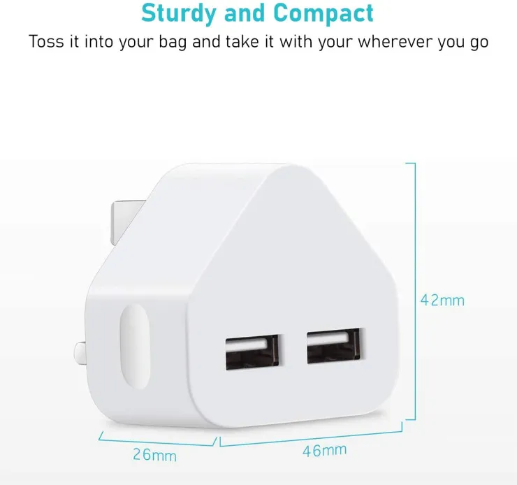 Power Up Faster Anywhere – Dual USB 3-Pin Wall Charger for All Your Devices UK Adapter!