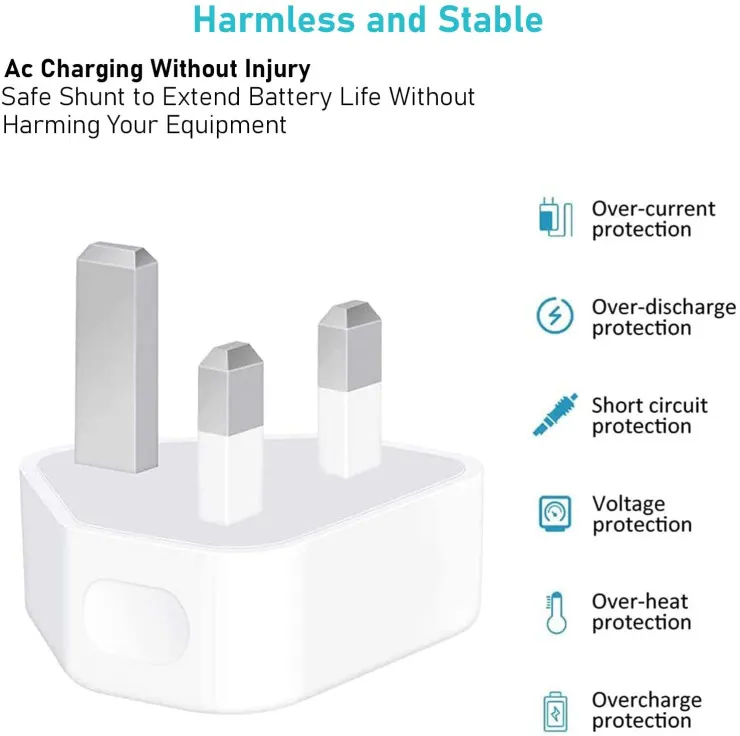 Safe and Reliable: The 3-pin mains plug design is not only compatible with UK outlets but also ensures a stable and secure connection. Safety features such as overcharge protection and short-circuit prevention make this charger a reliable choice for your devices.