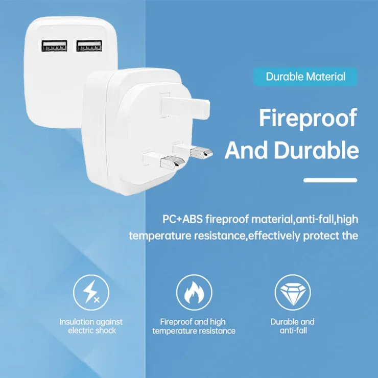 Dual USB Charger Wall Plug 10.5W PD 3.0 Fast Charging UK Adapter