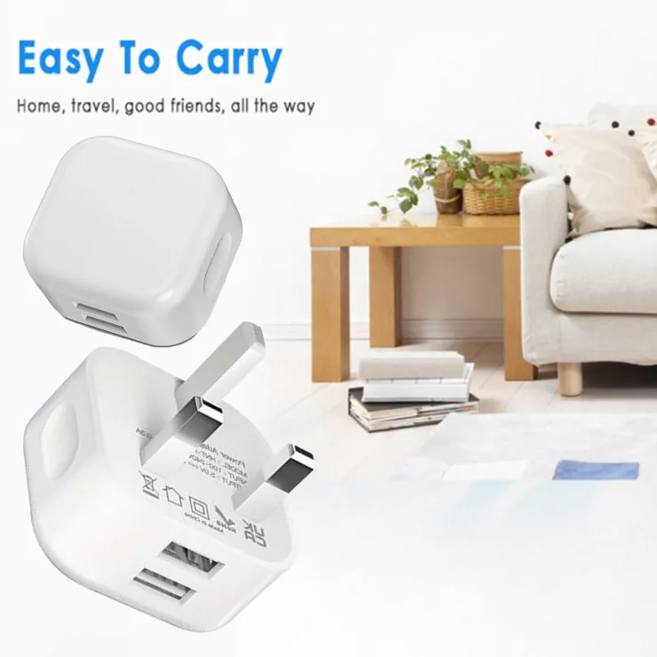 Universal 2.1A Fast Dual USB 3 Pin Wall Plug Charger Adapter UK