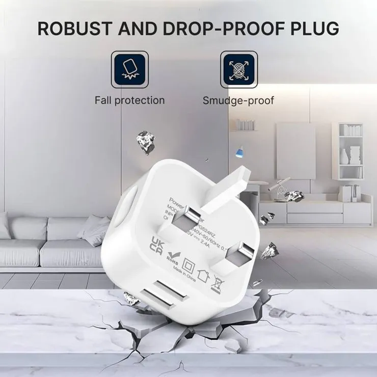 The charger comes with a sturdy 3-pin UK plug, designed specifically to fit UK outlets securely. No adapters or converters are needed – simply plug it into the wall and start charging.