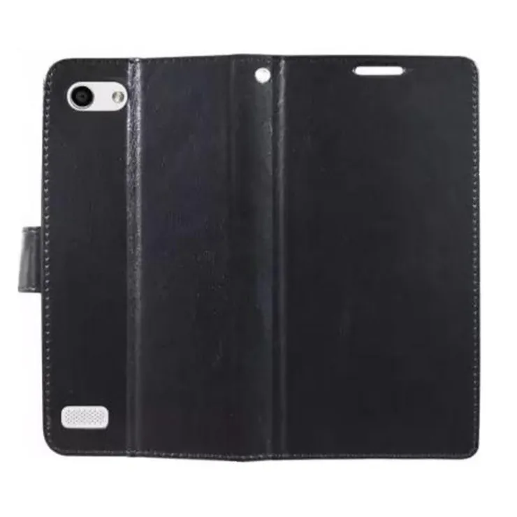 Elegant Black Wallet Case for Oppo Neo 7 (2015) with Stand and Card Slot