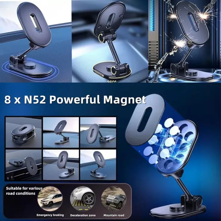 Whether you're commuting through the city or heading out on a road trip, this foldable magnetic phone holder offers the reliability and comfort you need. With its strong grip, easy rotation, and foldable design, it’s a must-have driving accessory for modern smartphone users.