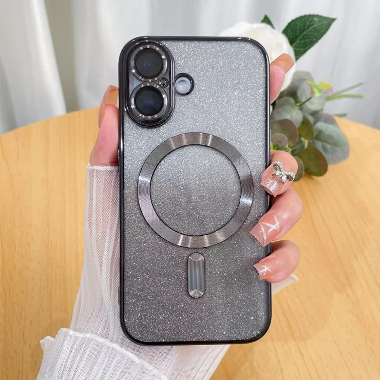 Shine Bright with the Glitter MagSafe Case for iPhone 16 - Black!