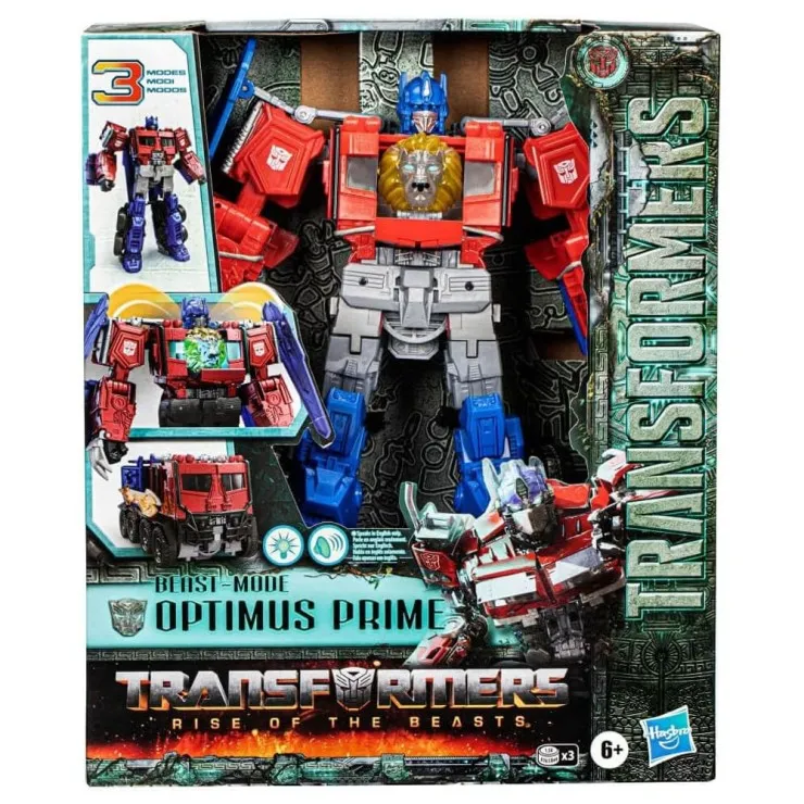 | Brand | Hasbro | Type | Action Figure Toy | Features | Hasbro Transformers Rise of the Beasts Optimus Prime figure with 3 modes—robot, vehicle, and beast—for action-packed play and collecting. | Material | Plastic | Color | Multicolor | Item model number | F3939 | Manufacturer recommended age | 6 years and up |