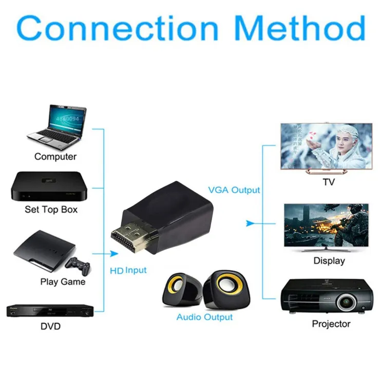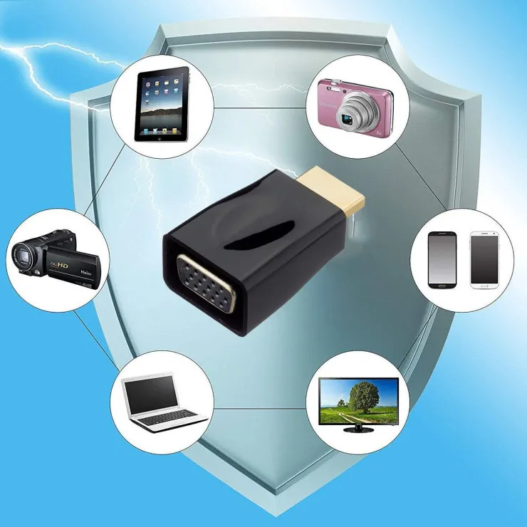 Our adapter is designed with portability in mind, and its compact shape makes it perfect for travel and travel. . - movement Whether you're in the office, at home, or on a business trip, you can conveniently connect your HDMI devices to VGA displays anywhere.