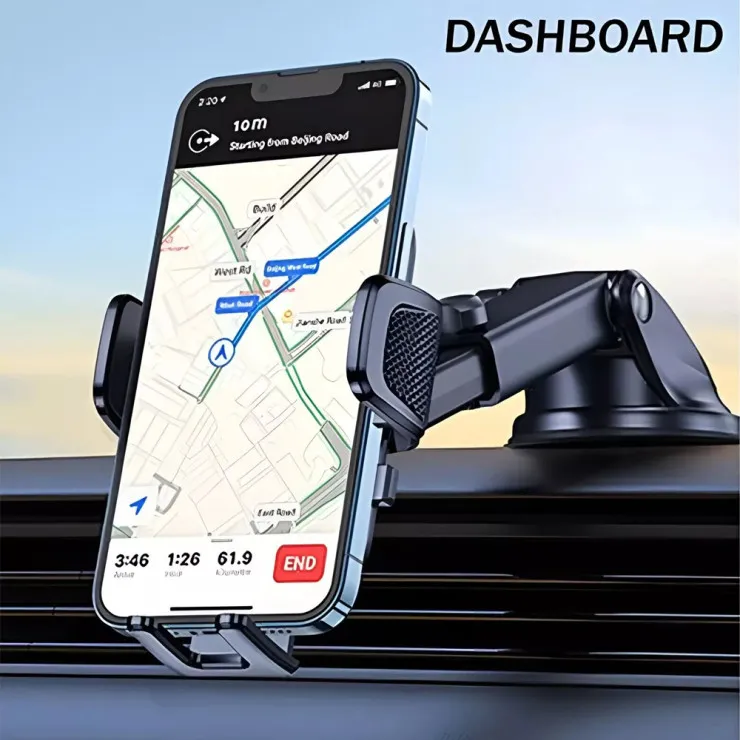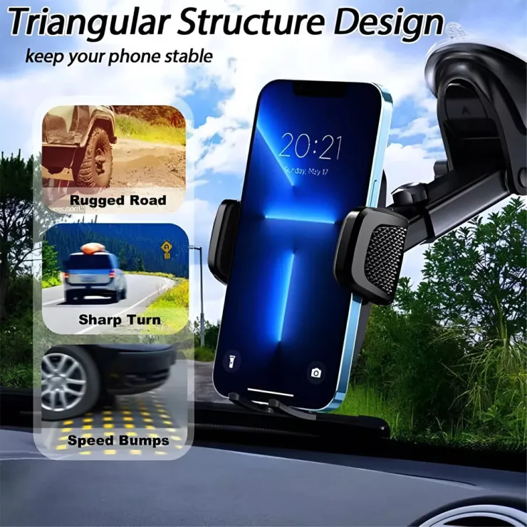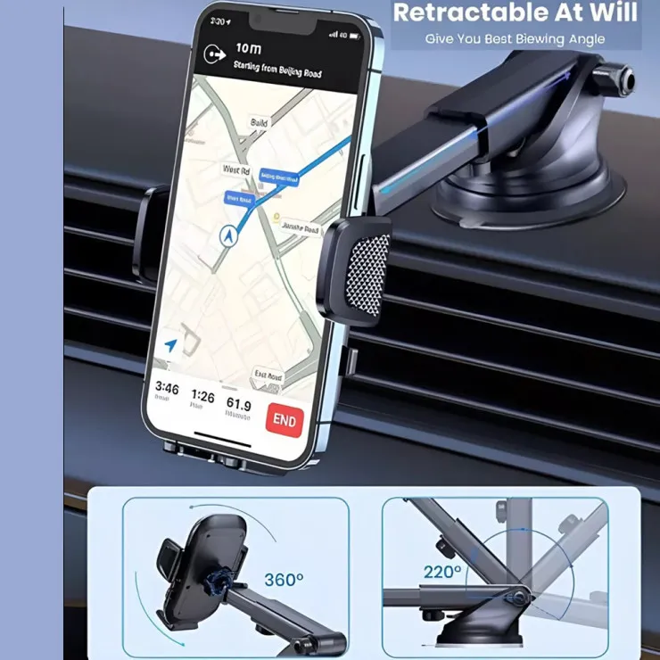 Equipped with a high-quality, super-adhesive suction cup, this phone holder firmly attaches to your vehicle's dashboard or windshield. Its strong grip ensures stability even on bumpy roads or during sudden stops. The suction cup is easy to install and remove, providing a hassle-free experience without leaving any residue or damage to your vehicle's surfaces.