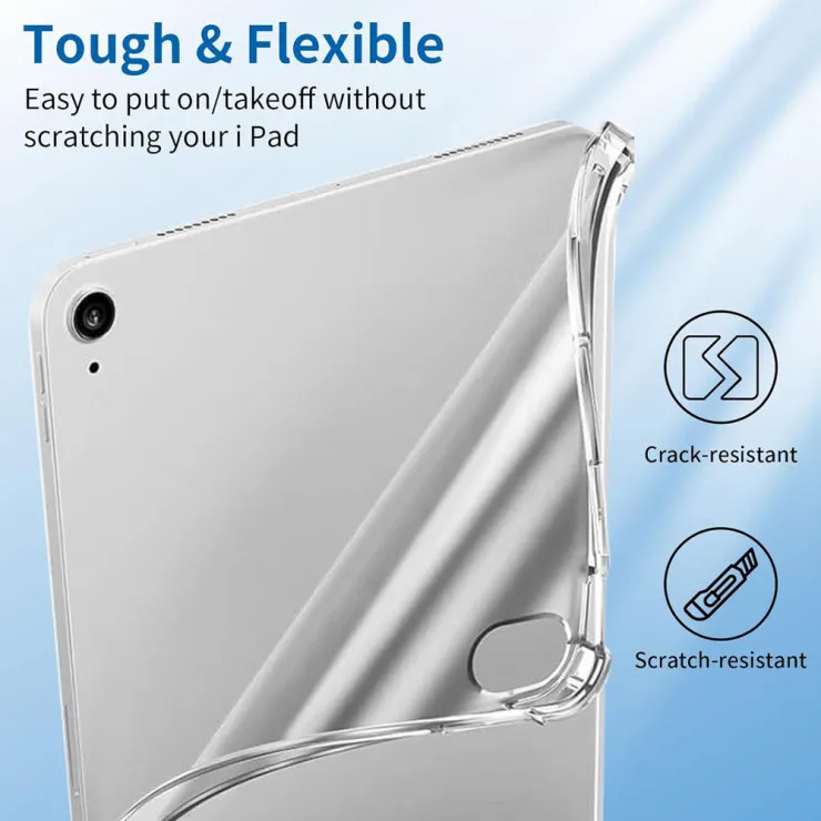 The Transparent Silicone Bumper Gel Case for iPad Air 11 (2024) - Ultra-Slim, Shockproof Protection provides a perfect balance of clarity, comfort, and durable defense, keeping your device safe while showcasing its original design.