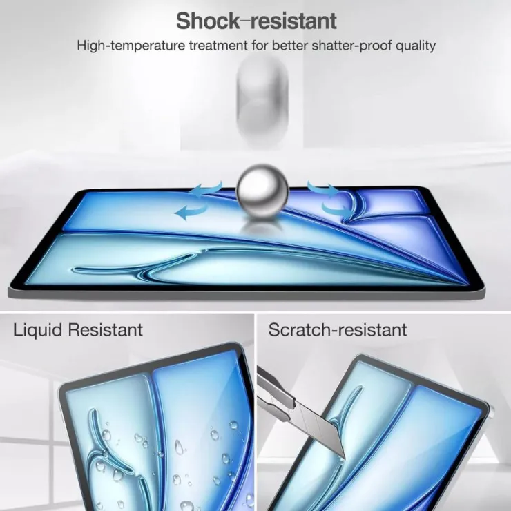 Accidental drops and impacts are no longer a concern with this highly durable tempered glass screen protector. Engineered with military-grade materials, it absorbs shocks effectively to prevent cracks and damage to your iPad Air 11″ 2024 screen. Whether you’re using your tablet at home, in the office, or on the go, this protector ensures your device is safe from unexpected accidents. Its robust design offers peace of mind, allowing you to enjoy your device without worrying about costly repairs or replacements.