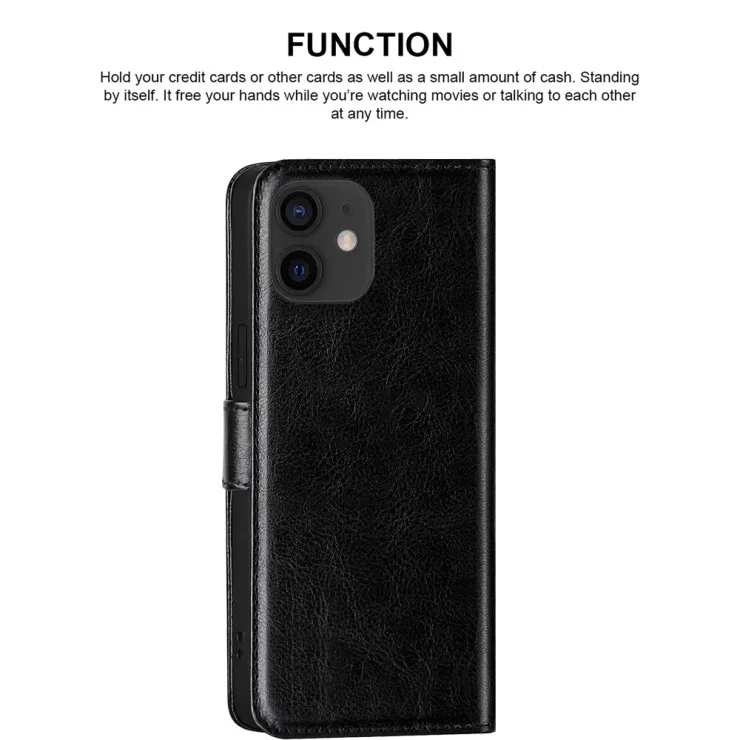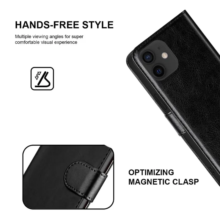 | Compatible Models | iPhone 12 | Features | Adjustable Angle, Anti-Fingerprint, Anti-Scratch, Card Pocket, Lightweight, Shockproof, Magnetic, Flip Closure, Synthetic Leather | Dimensions | 146.7 x 71.5 x 7.4 mm (5.78 x 2.81 x 0.29 in) | Item Weight | 70g | Colors | Black | Package Includes | 1x Case |