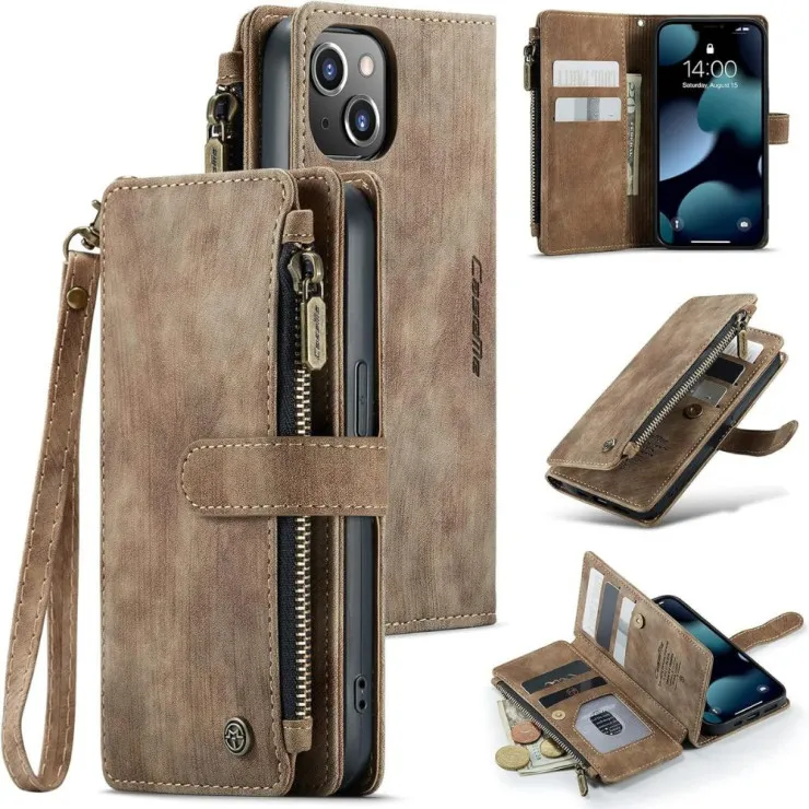 The iPhone 13 wallet case features a secure magnetic closure that keeps your phone, cards, and cash safe. The magnetic flap snaps shut effortlessly, ensuring that nothing falls out while you're on the move. It’s designed to give you peace of mind knowing your belongings are secure at all times.