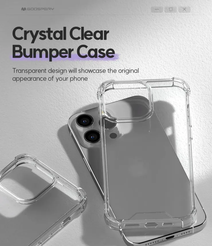 Protect your iPhone 15 Pro without hiding its beauty. This bumper clear case is designed to showcase the original design of your device while delivering reliable everyday protection. The transparent gel finish allows the Apple logo and elegant colour of your phone to shine through, giving it a minimalist yet polished look.