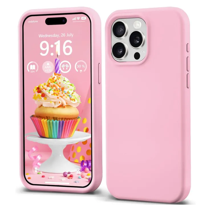 Protect your iPhone 15 Pro in style with this slim, shockproof liquid silicone case in pink — the perfect blend of elegance and everyday defence
