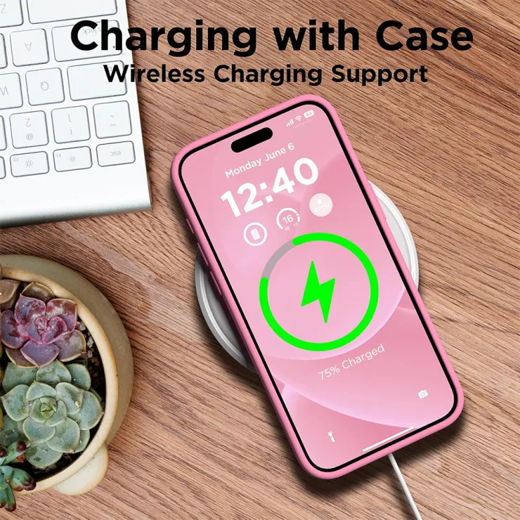 Keep your iPhone 15 powered up effortlessly without removing the case. It supports all Qi-standard wireless chargers, allowing convenient charging without any interference.
