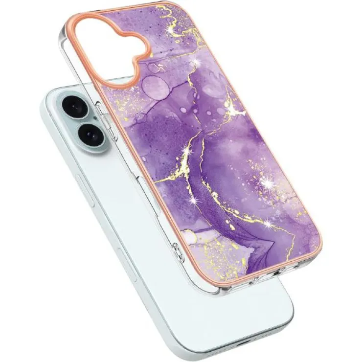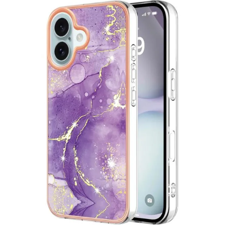 Protect your iPhone 16 with a slim, shockproof TPU case, marble purple!