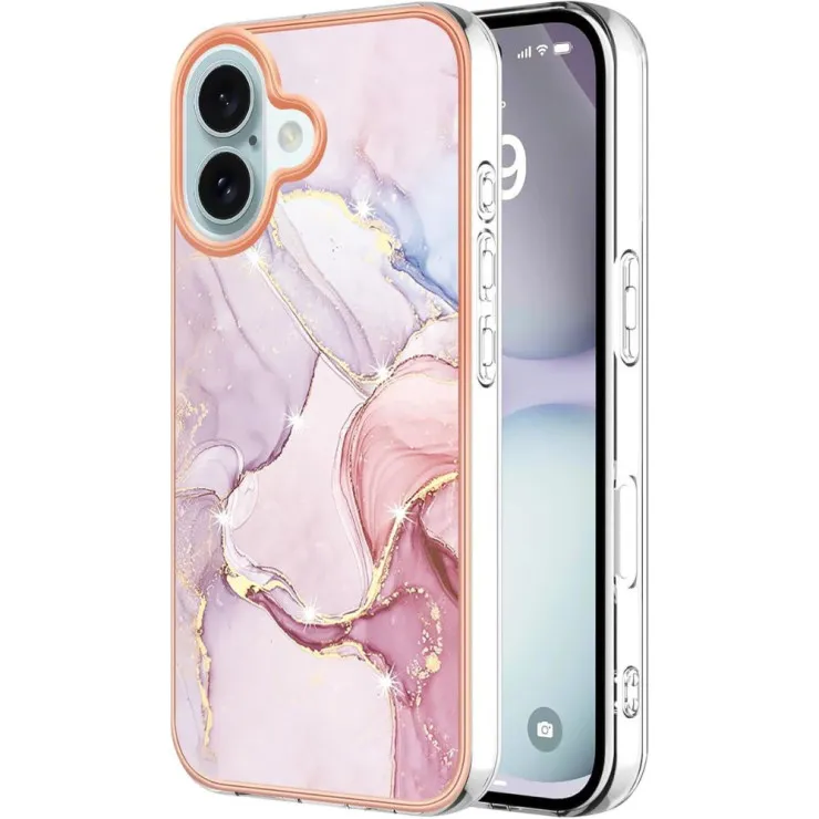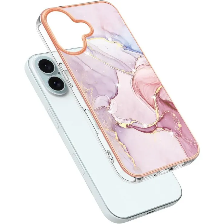 Stylish Marble Rose Gold TPU Case for iPhone 16 - Slim, Shockproof, and Protective Design!