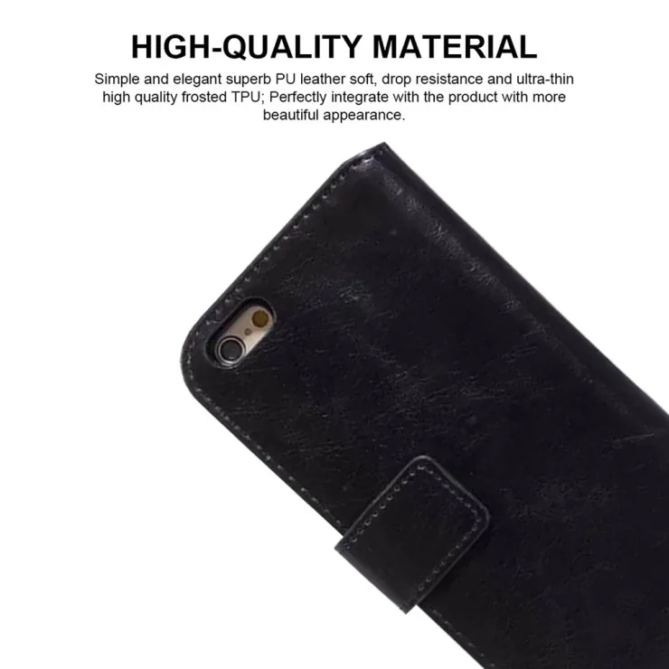 | Compatible Models | iPhone 6 Plus | Features | Adjustable Angle, Anti-Fingerprint, Anti-Scratch, Card Pocket, Lightweight, Shockproof, Magnetic, Flip Closure, Synthetic Leather | Dimensions | 158.1 x 77.8 x 7.1 mm (6.22 x 3.06 x 0.28 in) | Item Weight | 70g | Colors | Black | Package Includes | 1x Case |