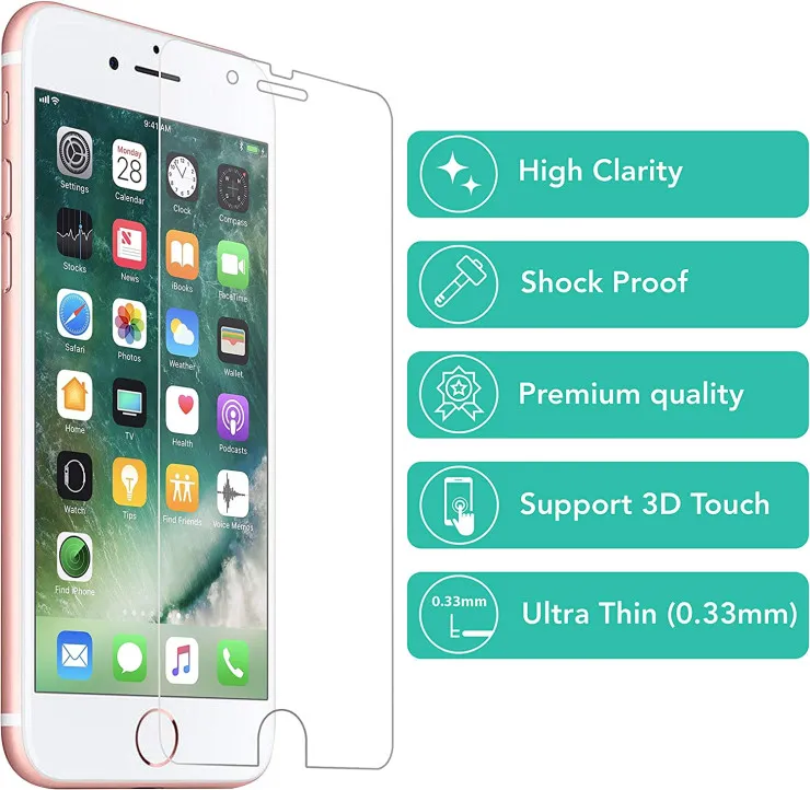 - EASY INSTALLATION: Removing dust and aligning it properly before actual installation. No worrying about bubbles, enjoy your screen as if it wasn’t there on iPhone 6s tempered glass, Our screen protector is constructed from carefully processed Tempered Glass to protect the screen of the device from shocks and scratches. It is particularly effective in absorbing the impact with the industry-high 9H hardness.
