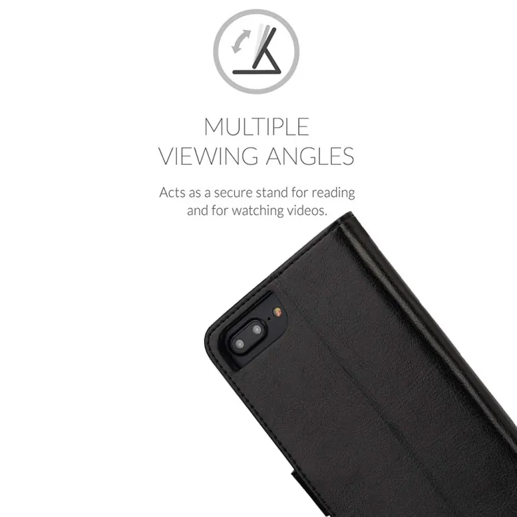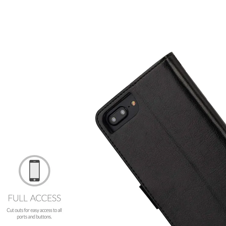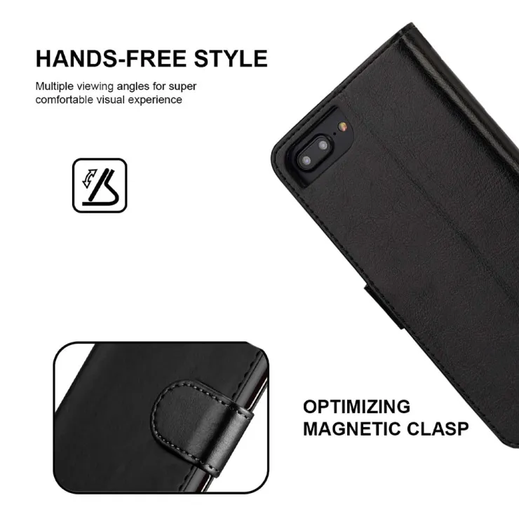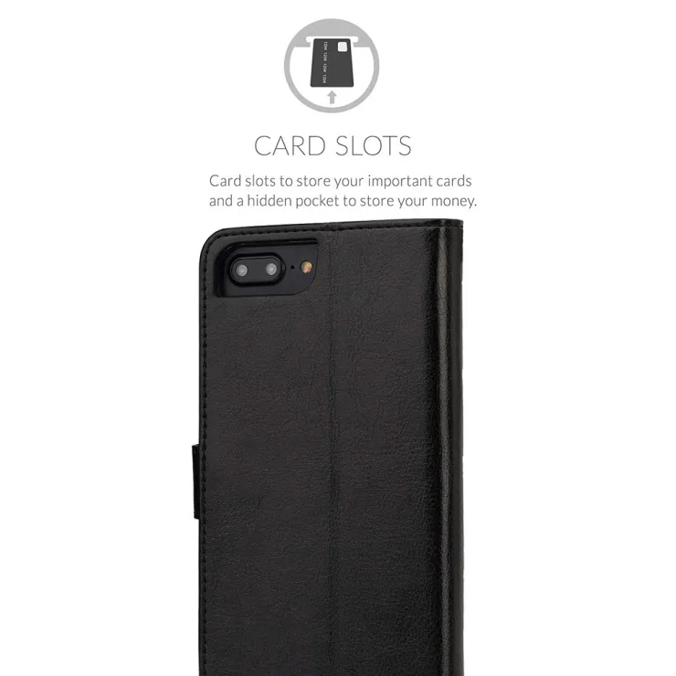 Black Leather Flip Wallet Case for iPhone 8 Plus – Magnetic Closure & Card Slots (2017) UK