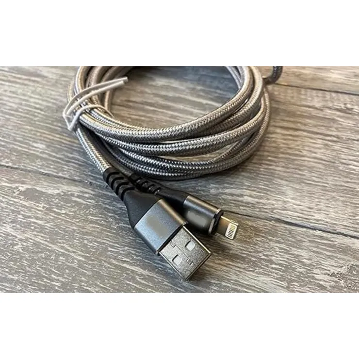 Experience seamless charging and syncing with our 2-meter Nylon Braided Lightning Cable. This cable is designed for reliability and durability, featuring a robust nylon braided exterior that enhances its lifespan and resistance to wear and tear. Compatible with iPhone and iPad, it supports fast charging with a 5V/2.4A output. The gray color and aluminum connectors add a sleek touch to your setup, making it ideal for home, office, or travel use. Enjoy convenience and performance for all your Apple devices.
