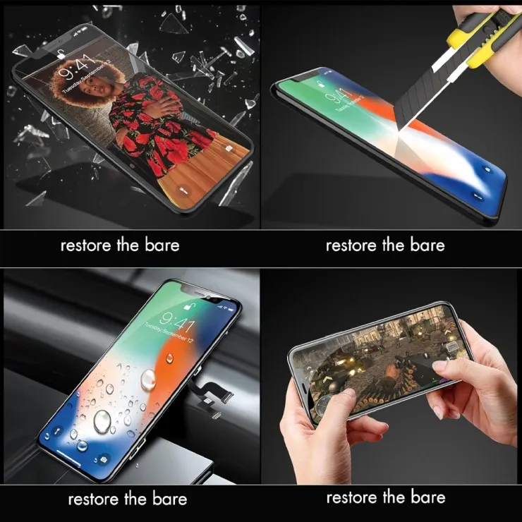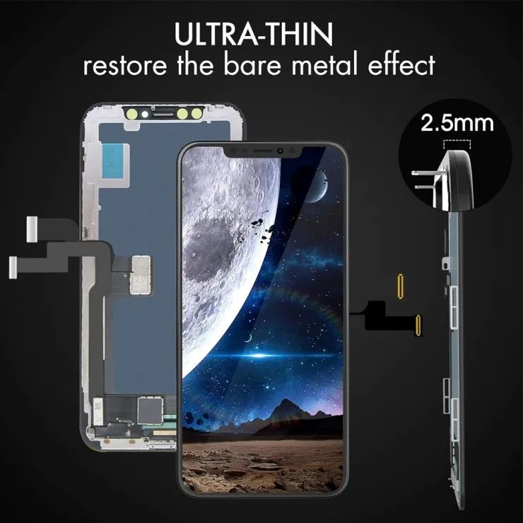 | Compatible Brand | For Apple | Compatible Models | For iPhone X, XR, XS & Xs Max | Type | Screen Replacement | Features | High-quality Soft OLED display, fast & accurate touch response, factory tested & 100% working, scratch & crack resistant, easy to install & perfect fit, affordable replacement option, UK stock & free shipping. | Resolution | 720*1558 | TP Structure | InCell | Brightness Range | 420 ± 50 (cd/m²) | SRGB | 85% | Color Temperature | 7300 ± 500K | Encapsulation Mode | COG | Frame Included | No | Screen Type | Soft OLED LCD | Manufacturer Warranty | 30 Days | Package Includes | 1x Screen Replacement |