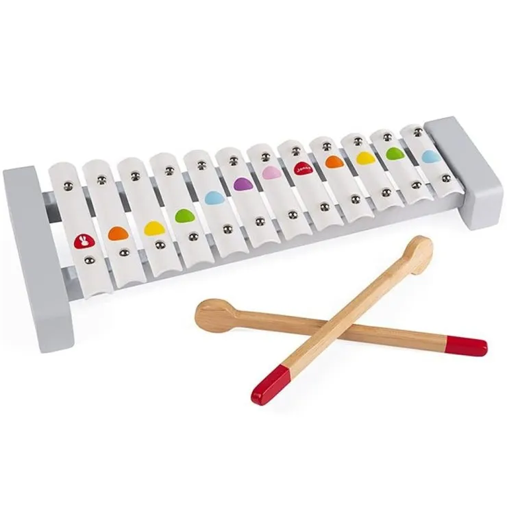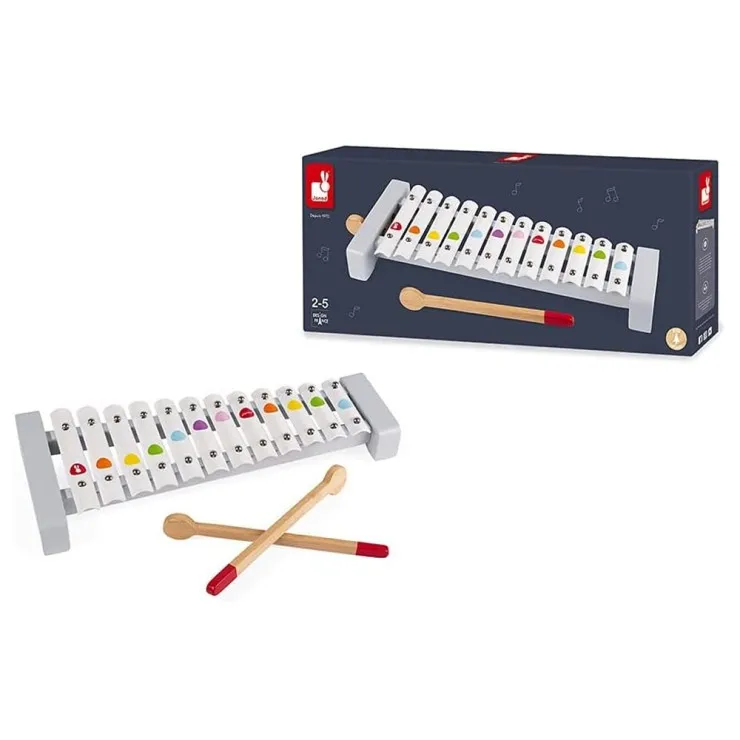 | Brand | Janod | Type | Musical Toy | Features | Janod J07604 – 12-tone wooden and metal xylophone with two mallets, colorful Confetti design, develops rhythm and coordination, for 2+ years. | Material | Wood | Theme | Music | Manufacturer recommended age | 2 to 5 Years | Instrument | Xylophone | Number of keys | 12 | Colour | Multicolored | Package Include | 1 × Janod Xylophone |