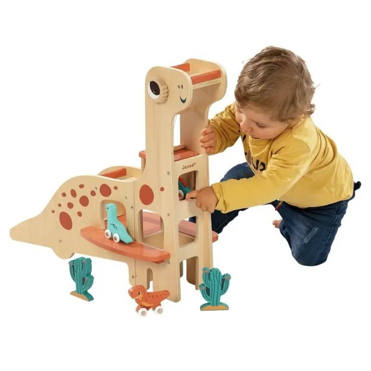 | Brand | Janod | Type | Garage Toy | Features | Diplodocus-shaped 50 cm wooden garage with lift, ramp, 4 rolling dinosaurs, 2 cacti, Pteranodon landing platform, FSC® wood build, and motor-skill boosting imaginative play. | Material | Wood | Color | Multi Colors | Product Dimensions | 60 x 23 x 50 cm; 2.24 kg | Manufacturer recommended age | 24 months - 6 years | Item model number | J05835 | Package Include | 1X Dinosaur Garage |