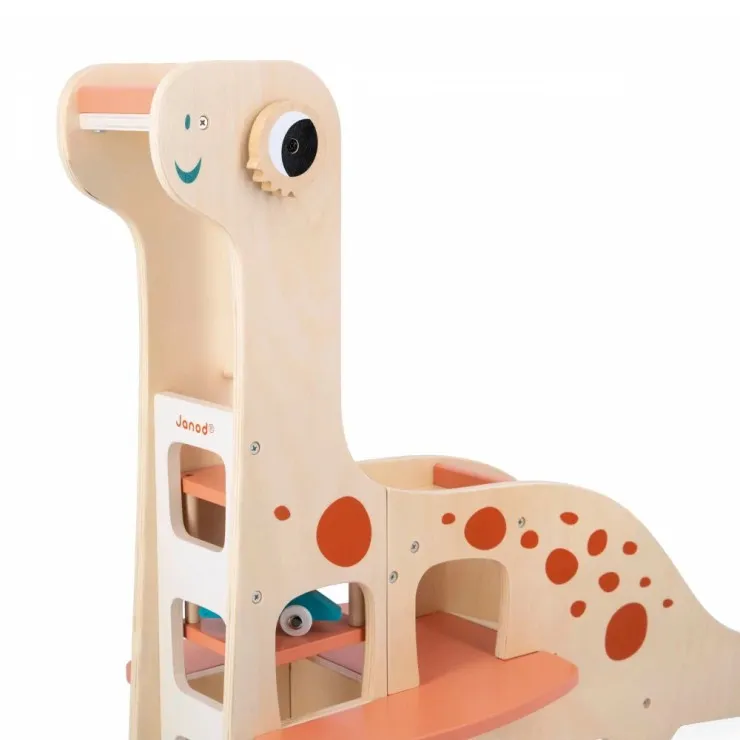 Step into Dino-Ville, where dinosaurs rule the roads and every day brings a new adventure! The Janod Diplodocus Dino Garage is no ordinary playset – it’s a beautifully designed 50 cm-high wooden garage in the shape of a friendly diplodocus. Bursting with character and interactive features, it invites children aged 2 years and above to let their imaginations run wild. Whether it’s a quick pit stop or a thrilling race down the diplodocus’s long neck, this wooden garage transforms playtime into a Jurassic journey.