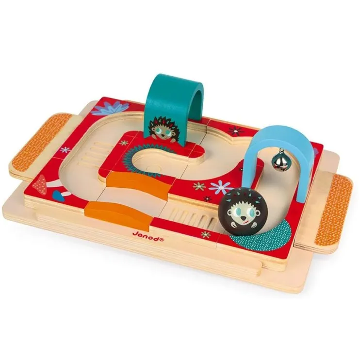 The Hedgehog Rally is more than just a toy—it’s a learning experience. Toddlers are guided through their first lessons in logic and observation as they assemble the 14 wooden pieces to rebuild the course. Once assembled, children can scroll the large hedgehog ball along the circuit using the integrated handles, combining action with strategy to keep them engaged and entertained.