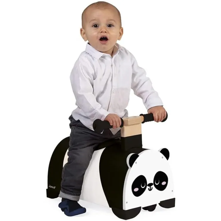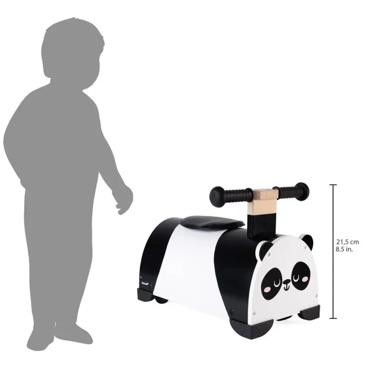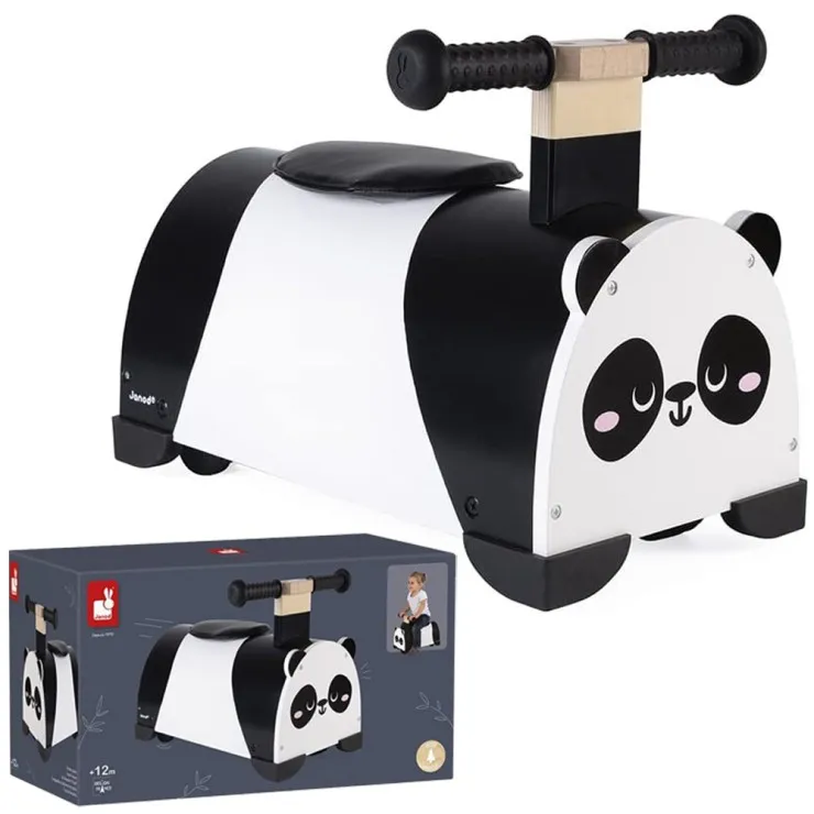 | Brand | Janod | Type | Ride-On Panda | Features | Wooden panda ride-on with 360° multidirectional wheels, ergonomic handles, removable foam seat, rear storage compartment, silicone safety corners, and French design for ages 1–3. | Material Type(s) | Wood | Color | White | Product Dimensions | 43 x 29.49 x 32.99 cm; 2.81 kg | Manufacturer recommended age | 12 months - 3 years | Item model number | J08052 | Package Include | 1X PANDA RIDE-ON |